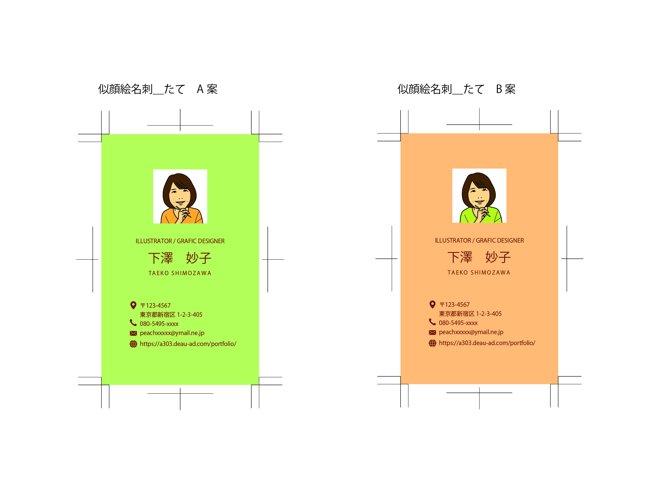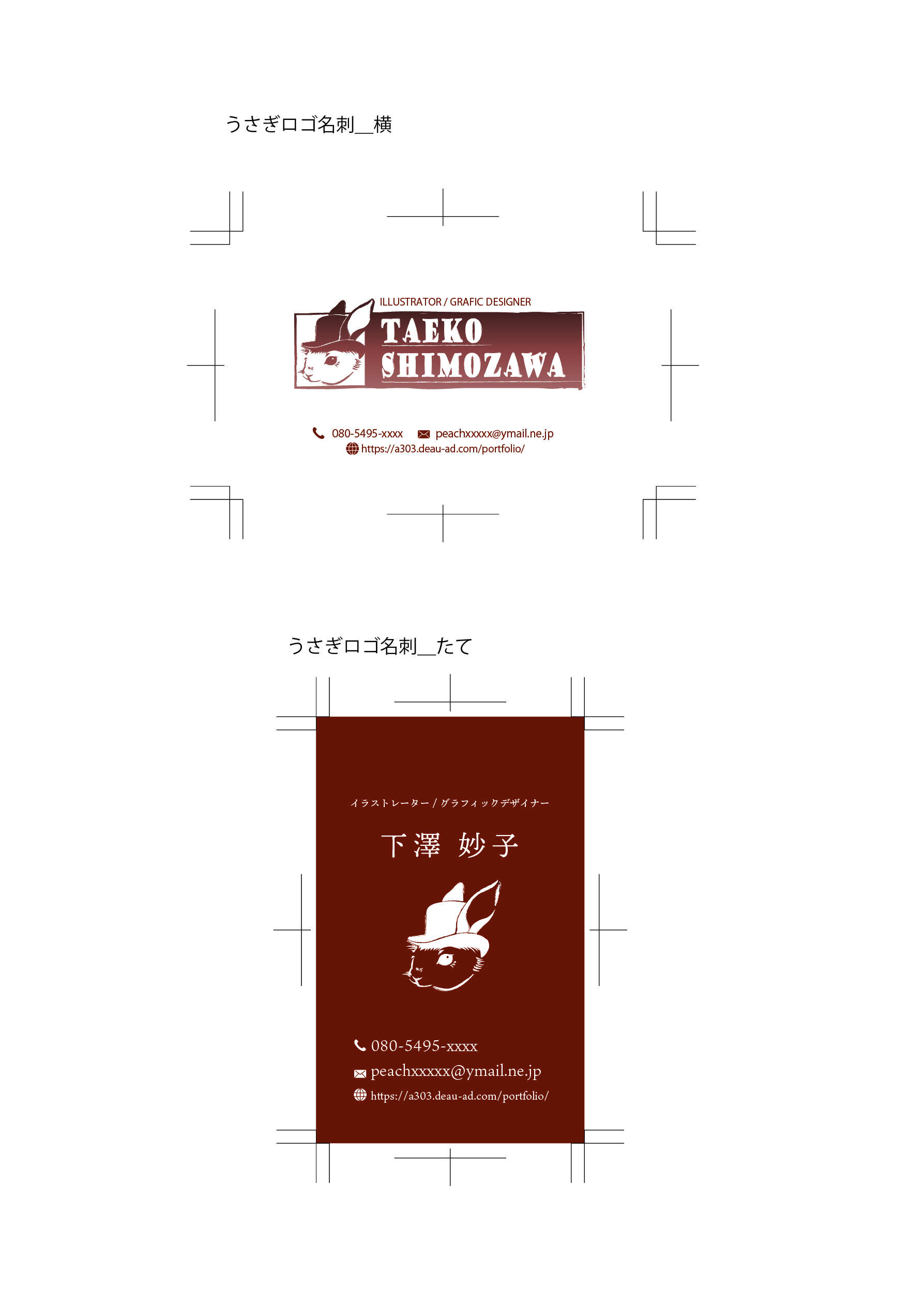 今日は似顔絵入りとうさぎロゴ入りの名刺をたて・横で作成した。