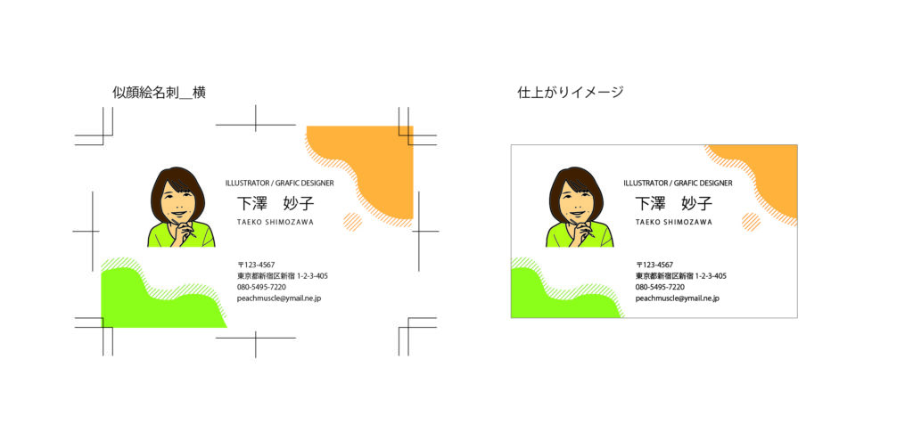 名刺制作 WORKS 2024.07.13 名刺を3種×色違いで作成。手描きで味わい深いイラストを入れたもの、似顔絵入りのものなど。 制作時間 :上記5種で約3時間 使用ソフト:Adobe Illustrator