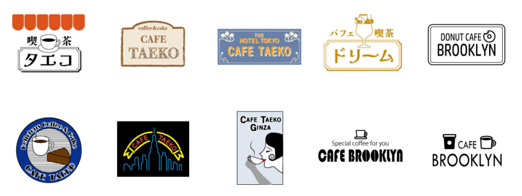 昭和レトロな喫茶店、アメリカにありそうなカフェなどのロゴを作成。