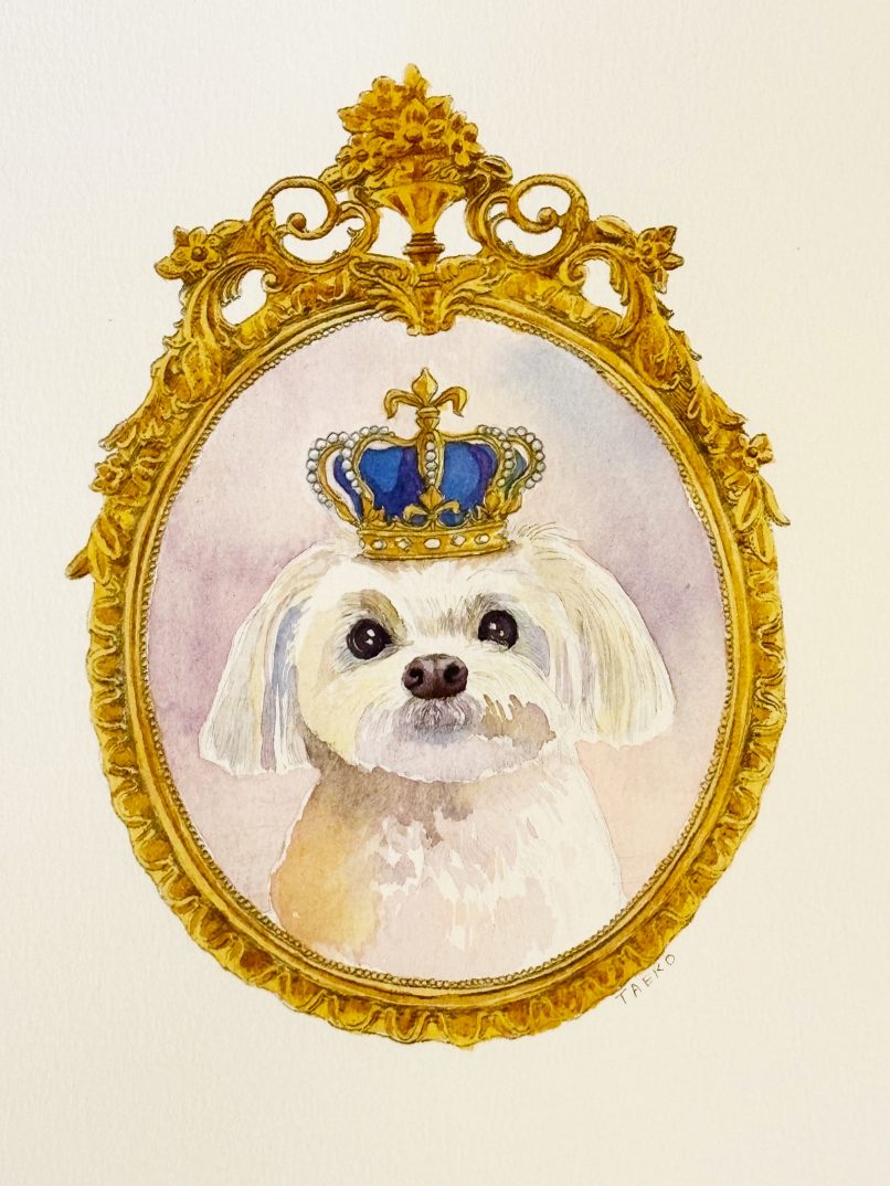 友人からの依頼でマルチーズを描きました。人懐っこい愛らしい表情を水彩で表現しました。